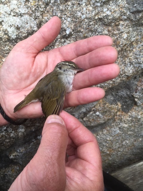 The bird of the trip, sort of, was found dead by Fran and Carol Hicks on 21st October, having collided with the conservatory at The Lighthouse. Thought, at first, to be a Yellow-browed it was soon recognised as one of the Arctic Warbler complex and finally as either Pale-legged or Sakhalin Leaf Warbler, a first for Britain if identified specifically on DNA evidence. If only it had just been stunned.